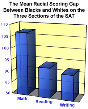 Aside from how colleges use the results, readers may be interested in knowing how black students fared on the new writing section of the SAT. The mean black score on the writing section in 2006 was 428. For whites, the mean score was 519. Therefore, the 91-point gap on the writing portion of the SAT is slightly smaller than the gap on the reading portion of the SAT and significantly smaller than the racial gap on the mathematics section of the SAT.