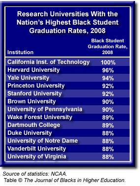 Yale University shows a black student graduation rate of 94 percent, the third-highest rate in the nation.