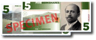 The currency is printed by Crane & Co., the company that supplies paper to the U.S. Mint. Berkshares come in denominations of $5, $10, $20, and $50. Pictured on the $5 Berkshare is W.E.B. Du Bois, the eminent black scholar who was born in Great Barrington, Massachusetts, a town in the Berkshire region.