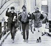 Black student protesters at the University of Minnesota in 1969 emerging from the administration building after their demands had been met.