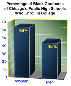The report also discovers a wide gender gap among black high school graduates. While 64 percent of black females went on to college, only 45 percent of black male graduates of the city’s high schools enrolled in college.