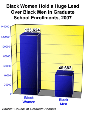 Overall, in 2007 black women made up 73 percent of African-American enrollments in graduate schools nationwide.